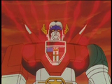 | Watching Sincline (Lotor) flee, GoLion stands victorious atop a small mountain (Figure 15). This shot wasn't cut from Voltron but was trimmed to eliminate the on-screen Japanese text, resulting in the mountain being less visible in Voltron. |