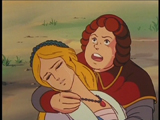 | Farla's (Allura) aunt (Orla) enters the room just as the young princess "dies" (Figure 3). After the doctor (Gorma) silently declares Farla (Allura) dead, her aunt (Orla) faints and collapses to the floor (Figures 4 & 5). |